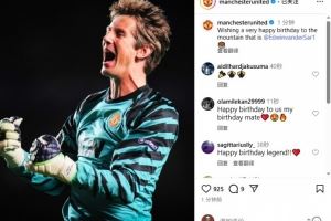 曼联官方Instagram写道:“祝门前的那座大山——范德萨生日快乐!”