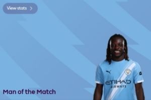 1进球7过人成功,官方:多库当选曼城3-0利物浦一役全场最佳