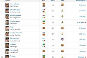 - 2025-10-02总身价12.9亿欧!德转列西甲最贵11人:皇马6人巴萨4人,西蒙入选