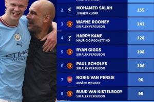 德转盘点同一主帅治下球员进球榜:亨利175球居首,萨拉赫155球